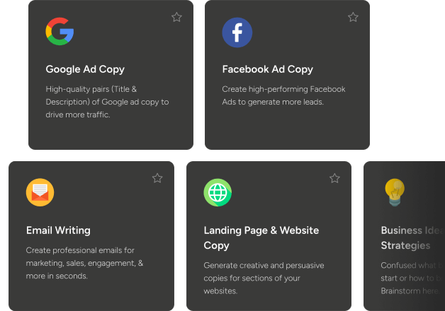 Our Use Cases help you quickly and easily create high-efficiency, human-friendly content for applications and social media, scripts for videos, boost SEO, and generate digital art – all at a fraction of the cost and in one place!